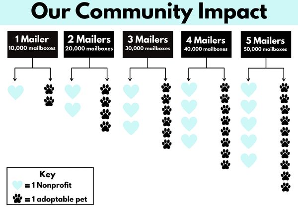 Your participation covers printing and mailing costs, which allows nonprofits to be featured for free and pets to gain exposure. You’re not just advertising — you’re building goodwill that strengthens trust in your brand.