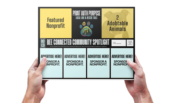 Bee Connected is a community-driven Every Door Direct Mail® marketing campaign that gives a nonprofit a free space and features adoptable animals alongside local businesses — so your advertising creates impact far beyond marketing.